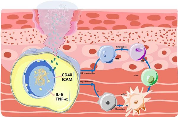 Abstract: In this study, a dual-network, dynamically cross-linked composite hydrogel was developed for wound closure and healing. The combined action of dopamine iron coordination reaction and Schiff base linkage between dopamine-modified oxidized hyaluronic acid (OHA) and polyacrylamide (PAM) was employed to form a dual-network, dynamically cross-linked structure in hydrogel. Then viscid germander herb (Vgb) extracted from total saponins was incorporated into the composite hydrogel to fabricate hydrogel wound dressing. The resultant hydrogel wound dressing demonstrated good biocompatibility in accelerating cell proliferation and migration. In vivo results demonstrated that compared with commercial dressings, the resultant hydrogel wound dressing facilitated wound healing on an infected full-thickness skin defect model by upregulating the gene expression of growth factors such as CD-31 and downregulating that of inflammatory factor IL-6. The transcriptomic results revealed that the biological mechanism by which Vgb regulated NF-κB and the innate immune system signaling pathways in the wound closure and healing processes.
