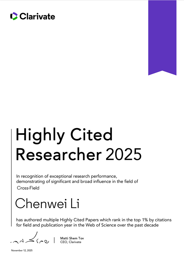 李老师入选科睿唯安“全球高被引科学家”(交叉学科),系全校唯一入选者。