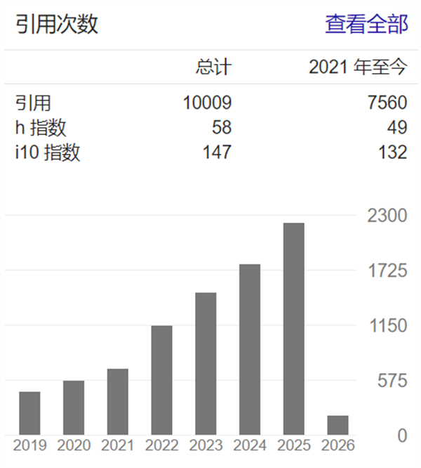 截止到2026年1月18日,龚老师的Google学术引用次数超过 1 万次!达到10009次,H因子58
