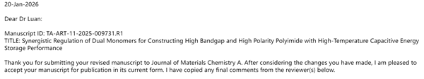 【2026】祝贺2022级博士生焦传佳第一篇文章被Journal of Materials Chemistry A期刊接收(IF=9.5)