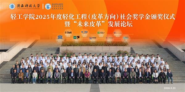 2026年3月22日,“中国皮革协会-杨正奖学金”、“兴业科技奖学金”等系列奖学金颁奖仪式暨“未来皮革”发展论坛在陕西科技大学图书馆学术报告厅举行。中国皮革协会、四川大学、陕西科技大学、齐鲁工业大学、齐齐哈尔大学、嘉兴学院等科研院校,斯塔尔、司马、泰庆、隆丰、通天星、达威、黎宁、兄弟、力厚、兴业等作为行业知名企业参会。